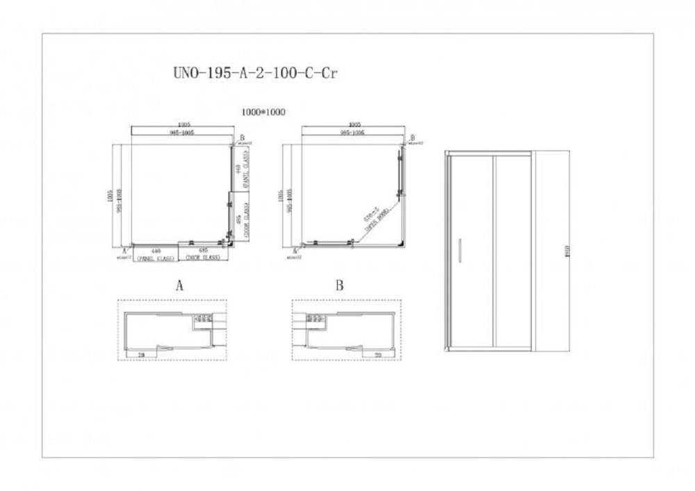 Душевой уголок BelBagno Uno-195, UNO-195-A-2-100-C-Cr, 100 х 100 х 195 см, профиль хром, стекло прозрачное