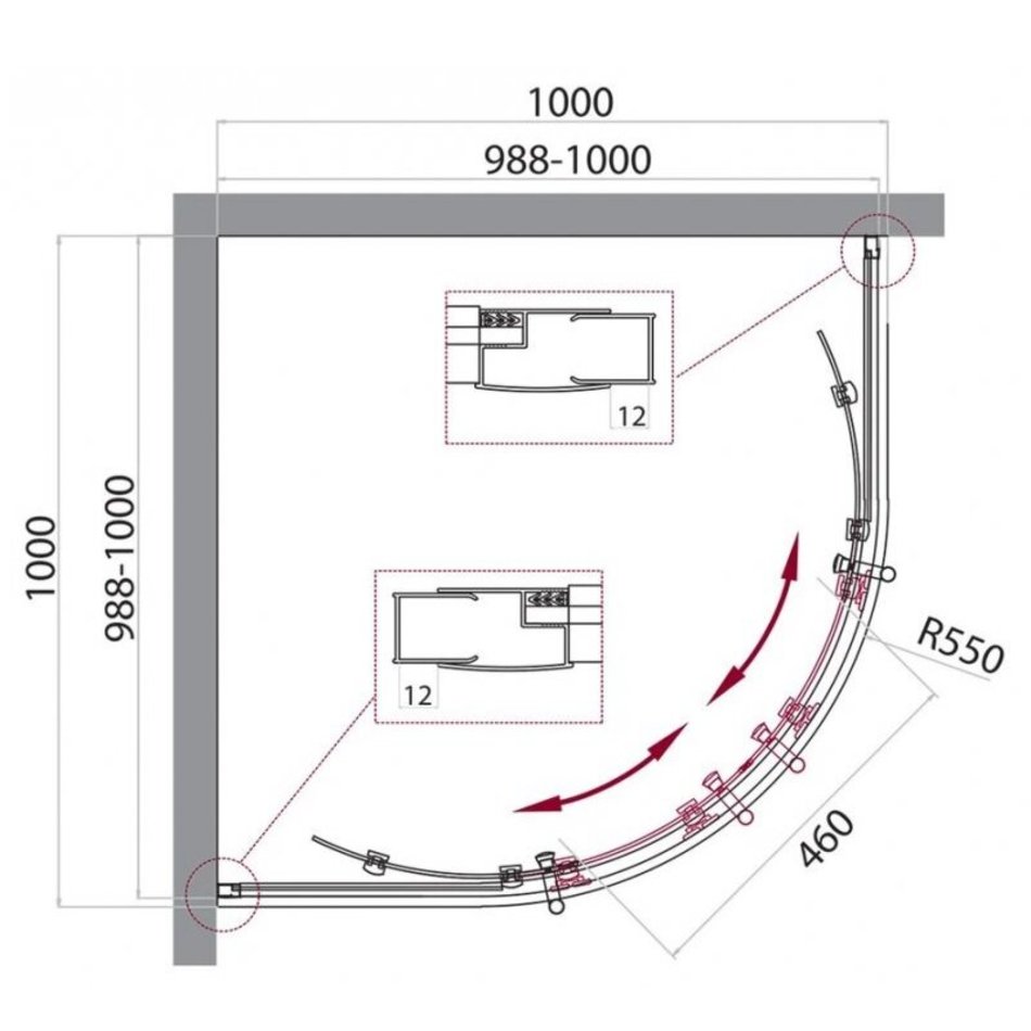 Душевой уголок BelBagno Uno-195, UNO-195-R-2-100-C-Cr, 100 х 100 х 195 см, профиль хром, стекло прозрачное