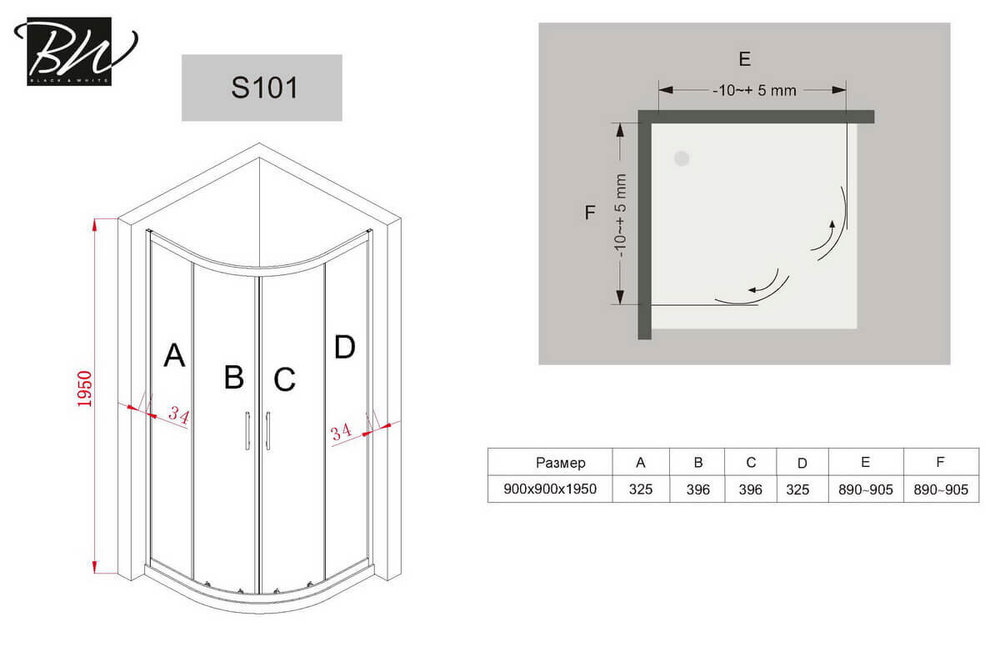 Душевой уголок Black&White Stellar Wind S101, 90 x 90 см, стекло прозрачное, профиль хром, 1019090