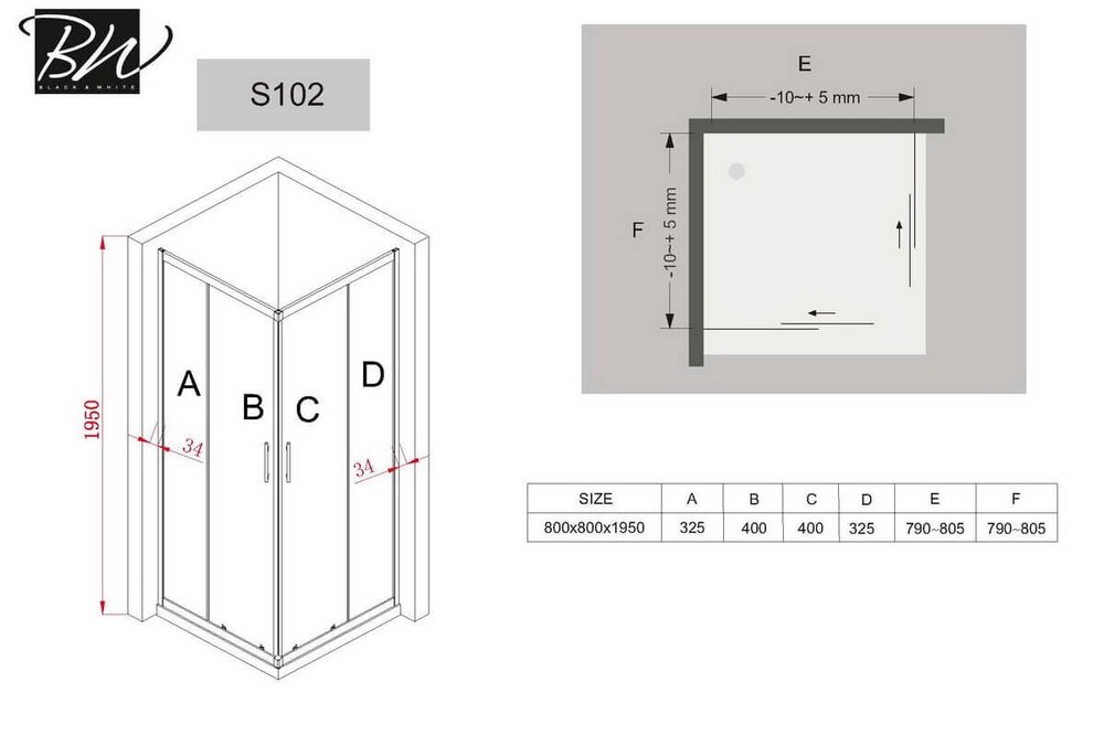 Душевой уголок Black&White Stellar Wind S102, 80 x 80 см, стекло прозрачное, профиль хром, 1028080