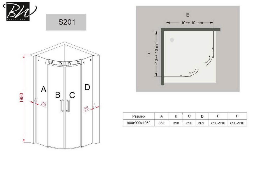 Душевой уголок Black&White Stellar Wind S201, 90 x 90 см, стекло прозрачное, профиль хром, 2019090