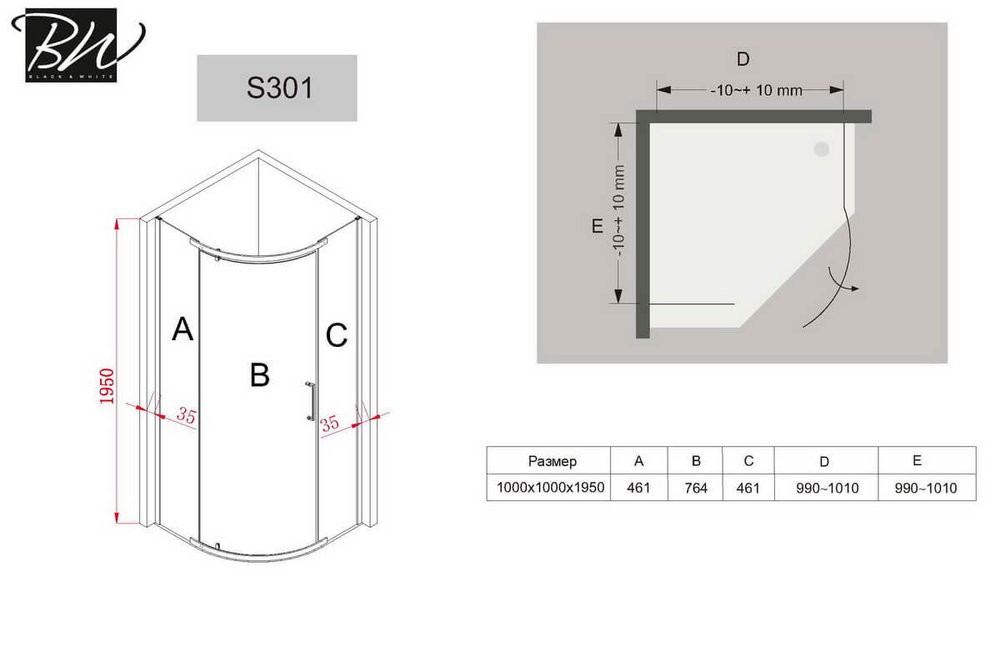 Душевой уголок Black&White Stellar Wind S301, 100 x 100 см, стекло прозрачное, профиль хром, 3011010