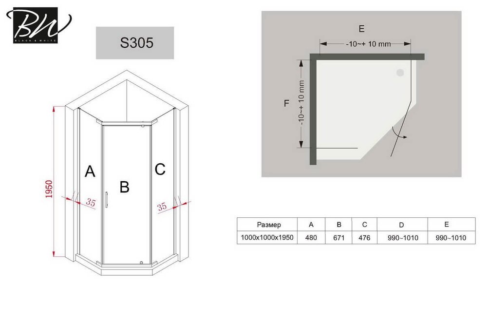 Душевой уголок Black&White Stellar Wind S305, 100 х 100 см, стекло прозрачное, профиль хром, 3051010