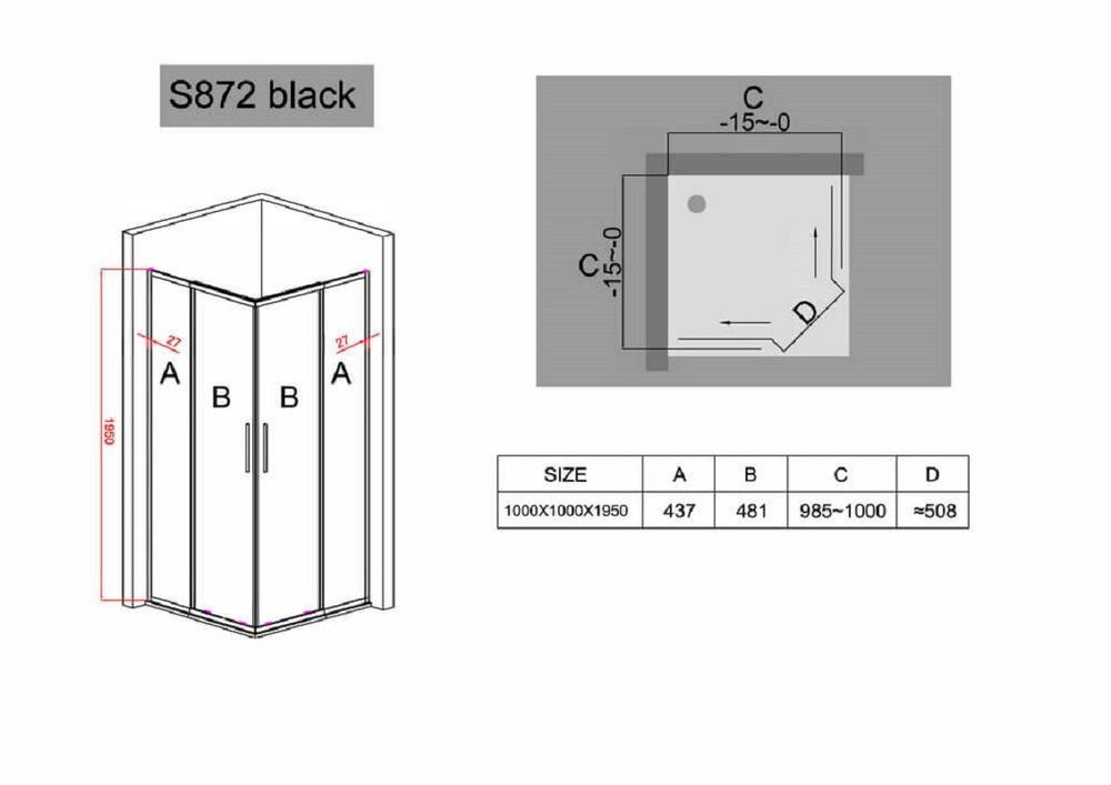 Душевой уголок Black&White Stellar Wind S872 Black, 100 x 100 см, стекло прозрачное, профиль черный матовый, 8721010