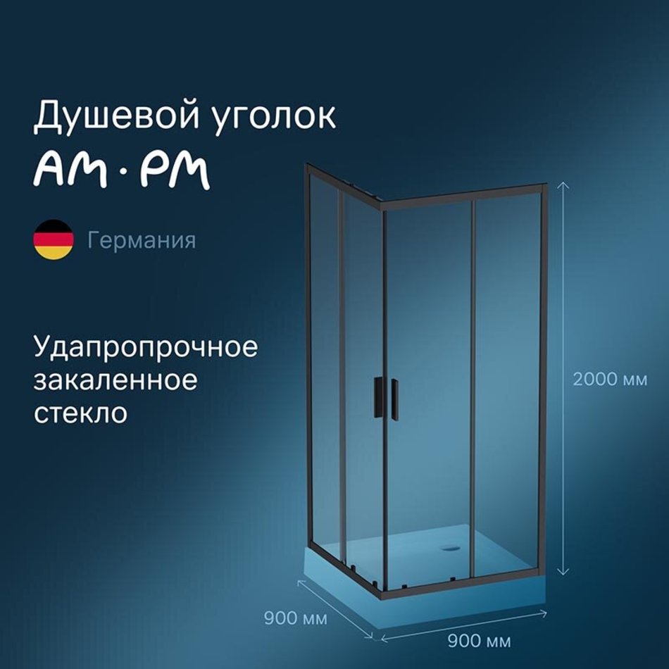 Душевой уголок Gem S Square, 90 x 90 см, высота 200 см, стекло прозрачное, профиль черный матовый, W93G-403-090BT