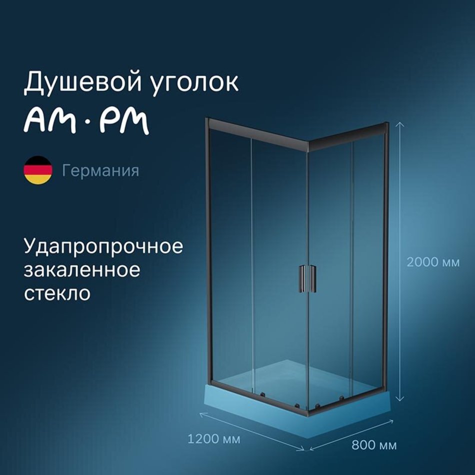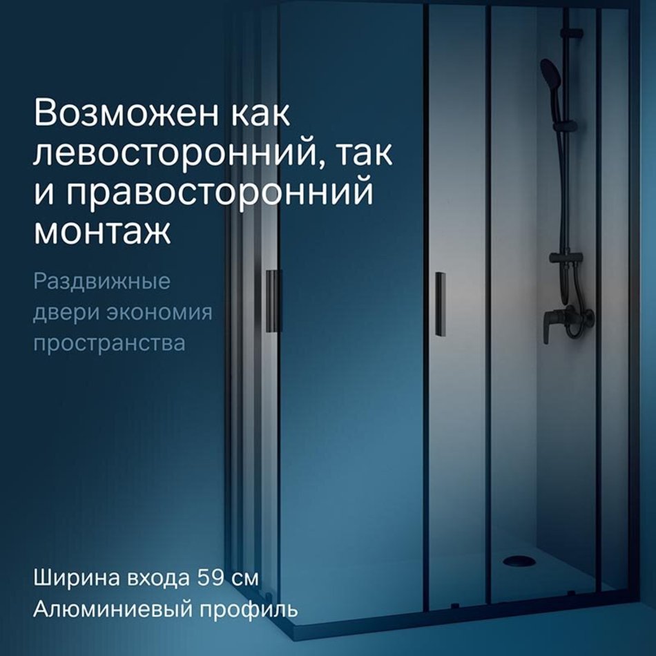 Душевой уголок Gem S Twin Slide, 120 x 80 см, высота 200 см, стекло прозрачное, профиль черный матовый, W93G-404-120280-BT