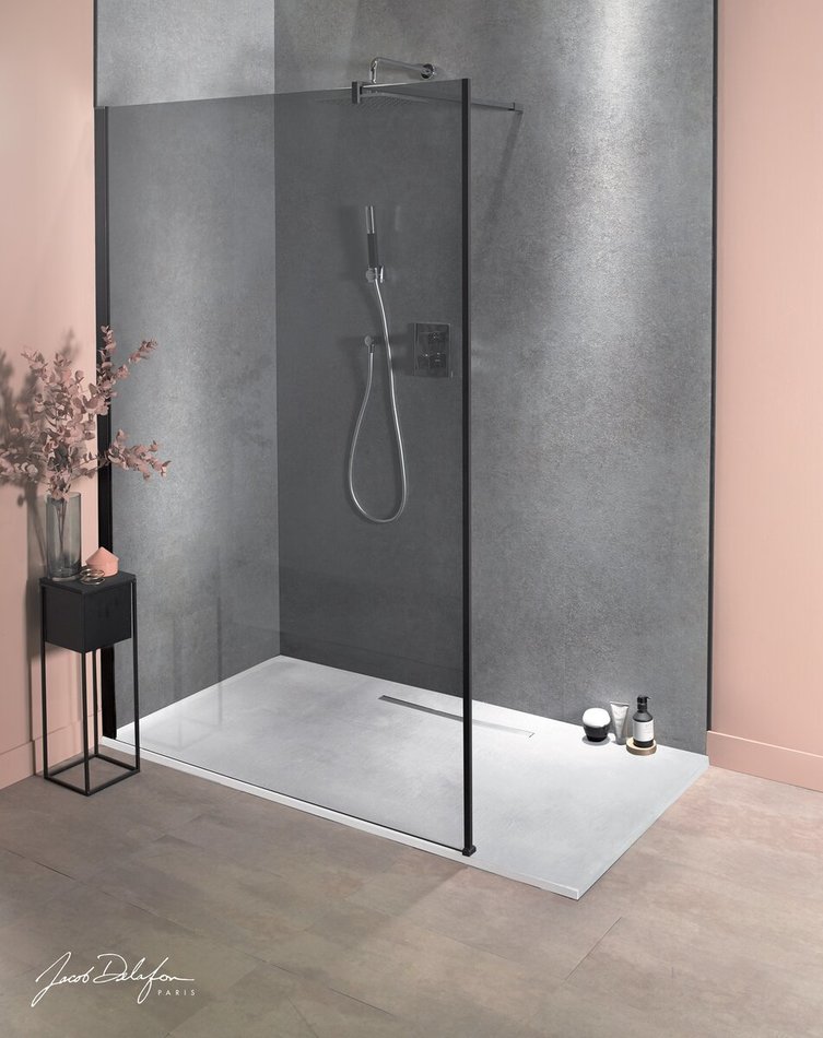 Душевой уголок Jacob Delafon Contra Walk In, 90 см, профиль черный, стекло прозрачное, E22W90-BLV
