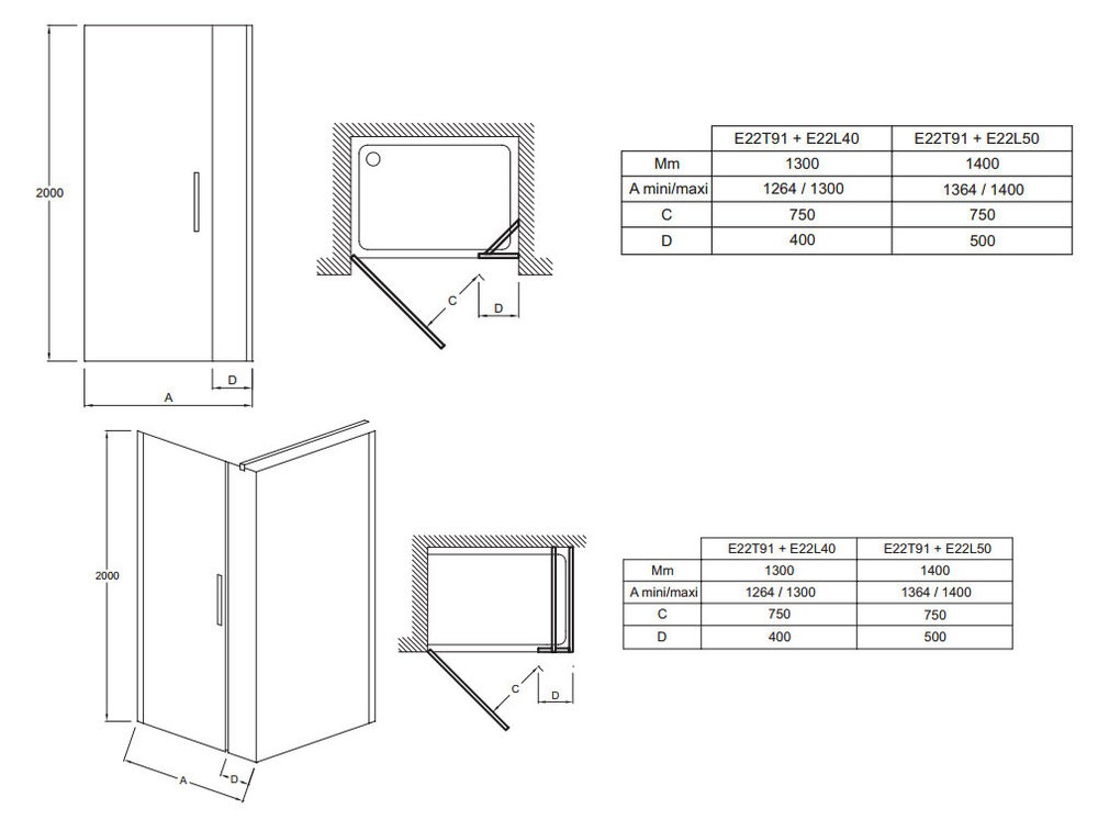 Душевой уголок Jacob Delafon Contra XXL, 130 x 90 см, с распашной дверью, профиль хром, стекло прозрачное, E22T91-GA/E22L40-GA/E22FT90-GA