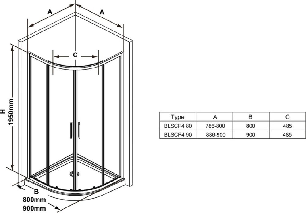 Изделие состоит из двух прямых неподвижных частей и двух изогнутых частей, образующих раздвижные двери. Устанавливается в облицованный кафелем угол ванной комнаты на поддоны RAVAK Ronda, Elipso, Elipso Pro, Elipso Pro Flat, Elipso Pro Chrome или непосредственно на пол со встроенным душевым каналом.