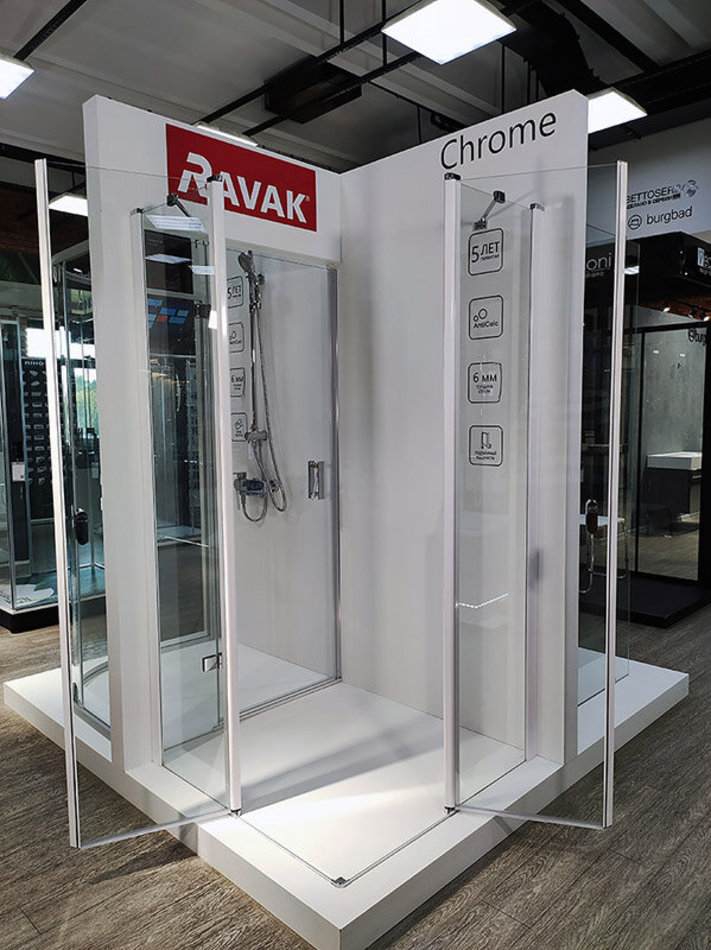 - Душевой уголок состоит из двух душевых дверей CRV2