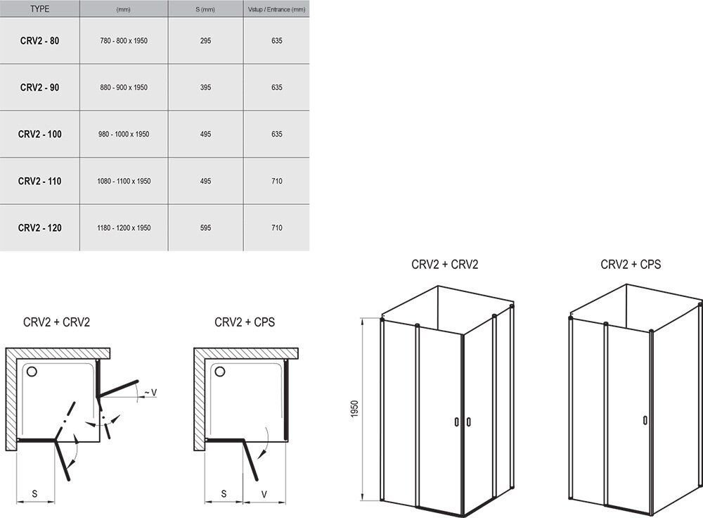 - Душевой уголок состоит из двух душевых дверей CRV2