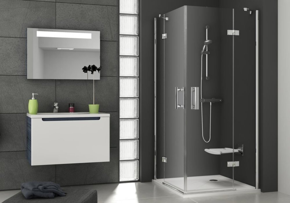 Изделие состоит из четырех ровных частей, две из которых образуют двери поворотного типа. Устанавливается в облицованный кафелем угол ванной комнаты на поддоны RAVAK ANGELA,PERSEUS, PERSEUS PRO, PERSEUS PRO FLAT, PERSEUS PRO CHROME или непосредственно на пол со встроенным душевым каналом или трапом. С помощью установочного профиля можно исправить строительные неровности стен (по 1,5 см в каждую сторону).
