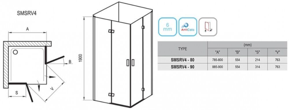 Душевой уголок Ravak Smartline SMSRV4-90, профиль хром, витраж транспарент, 1SV77A00Z1