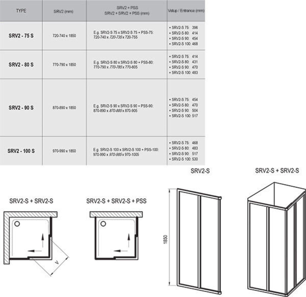 Для создания душевого уголка необходимо два изделия SRV2-S!