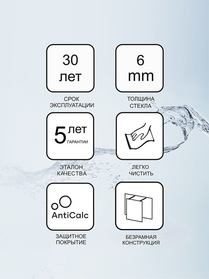 - высота стеклянной неподвижной стенки: 200 см