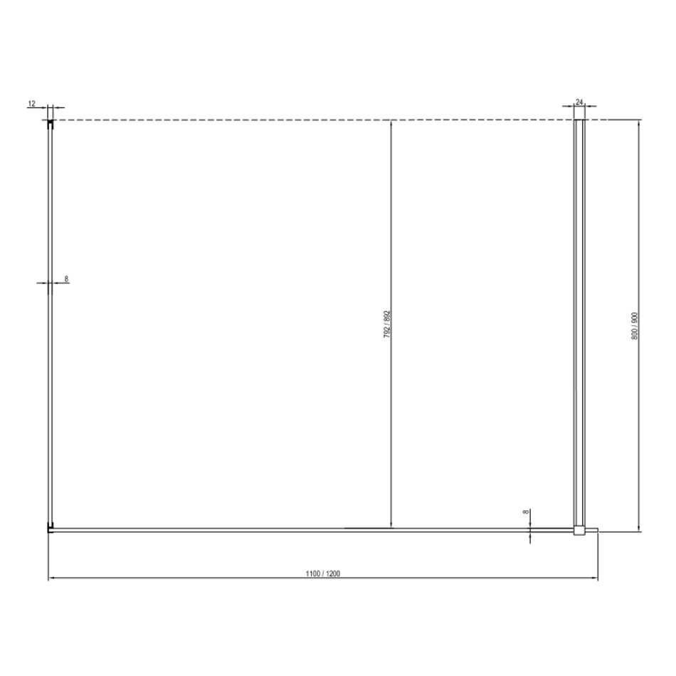 - ширина стеклянной неподвижной стенки Walk-in Corner 120/90 см