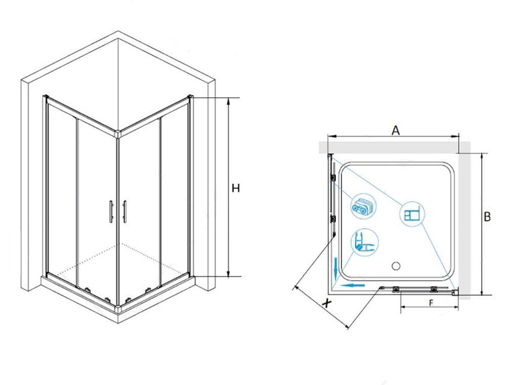 Душевой уголок RGW HO-31, 03063188-11, 80 х 80 x 195 см, дверь раздвижная, стекло прозрачное, хром