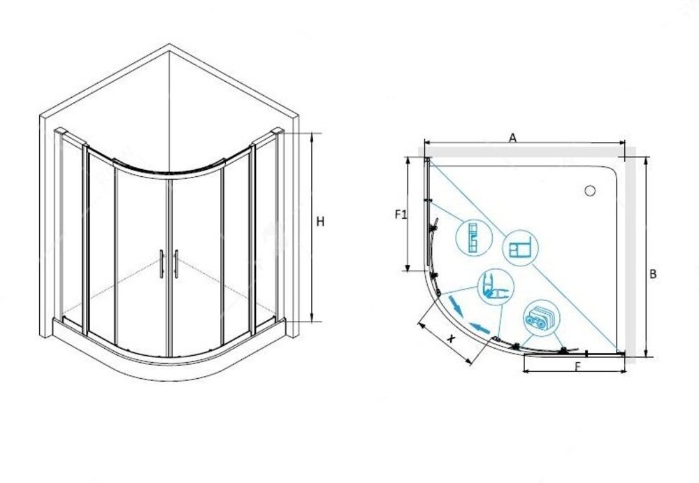 Душевой уголок RGW HO-512, 030651222-11, 120 х 120 x 195 см, четверть круга, дверь раздвижная, стекло прозрачное, хром