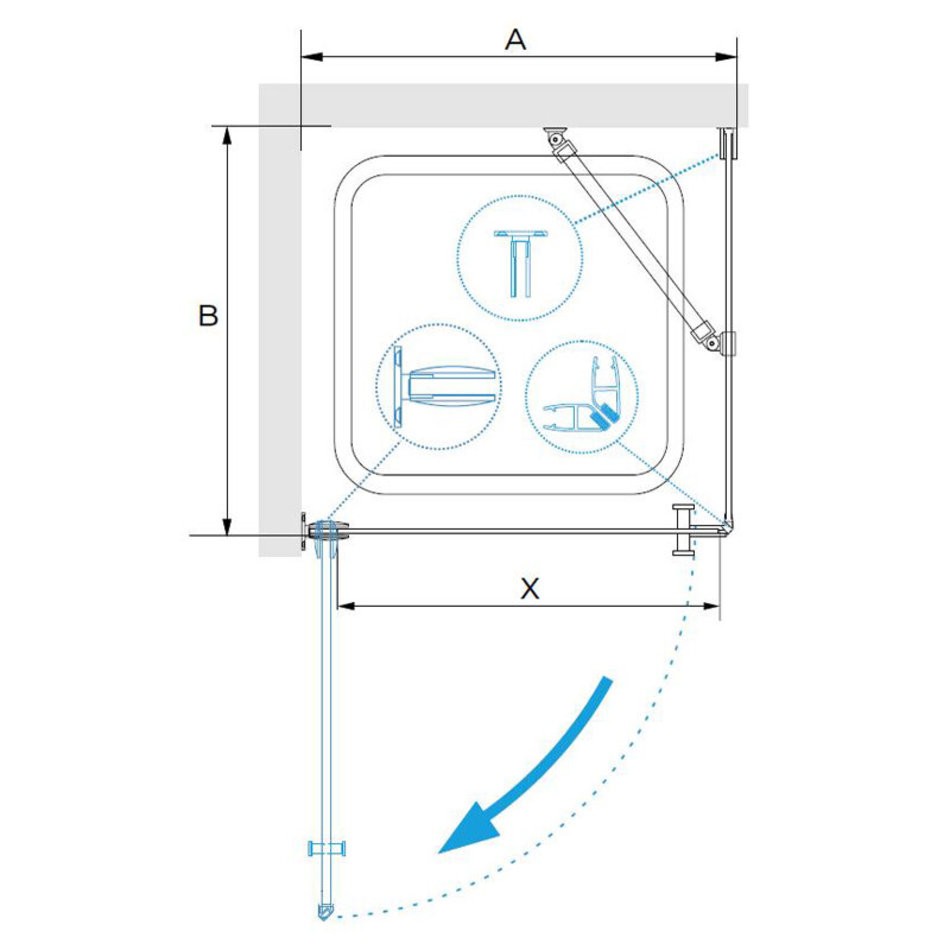 Душевой уголок RGW Hotel HO-034 35063488-11, 80 х 80 см, стекло прозрачное, профиль хром
