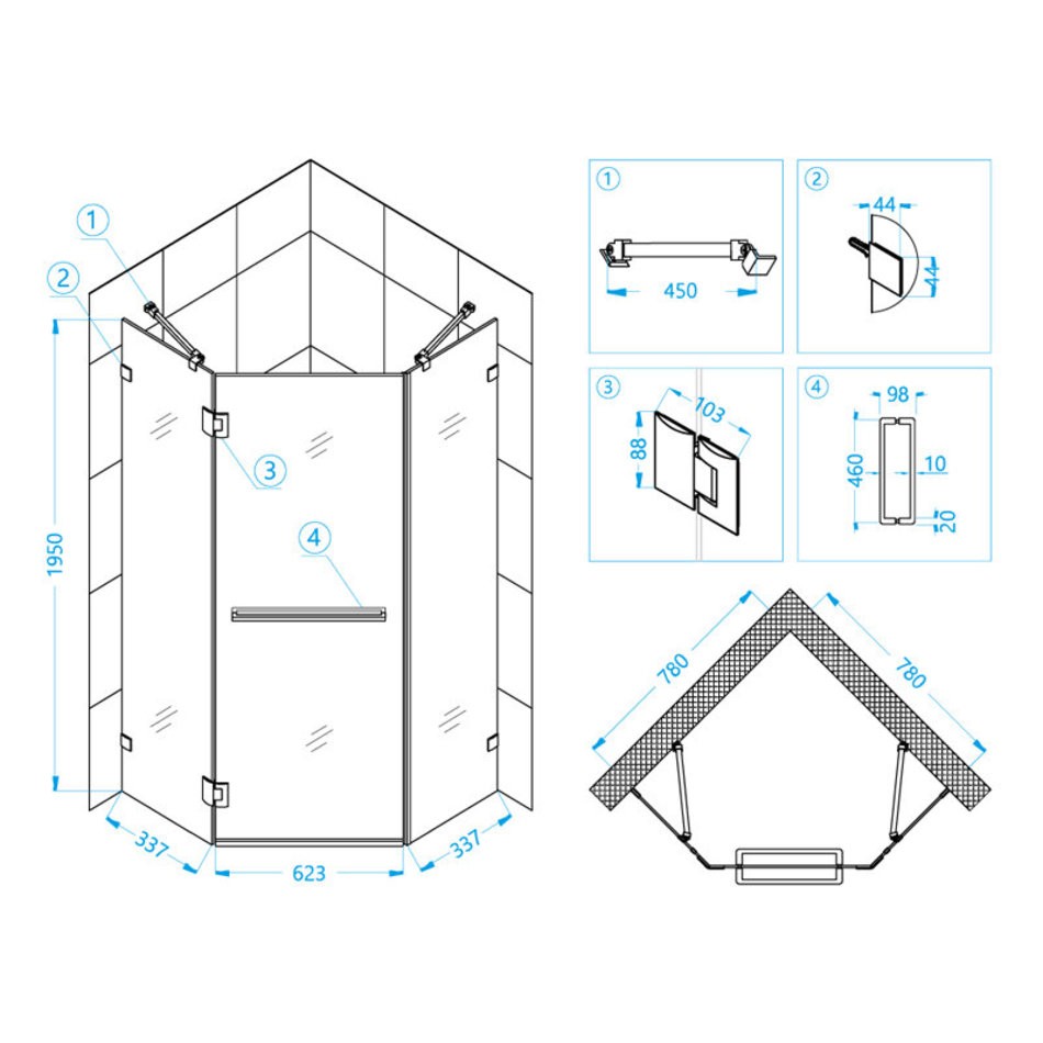 Душевой уголок RGW Hotel HO-082 350608288-11, 80 х 80 см, стекло прозрачное, профиль хром