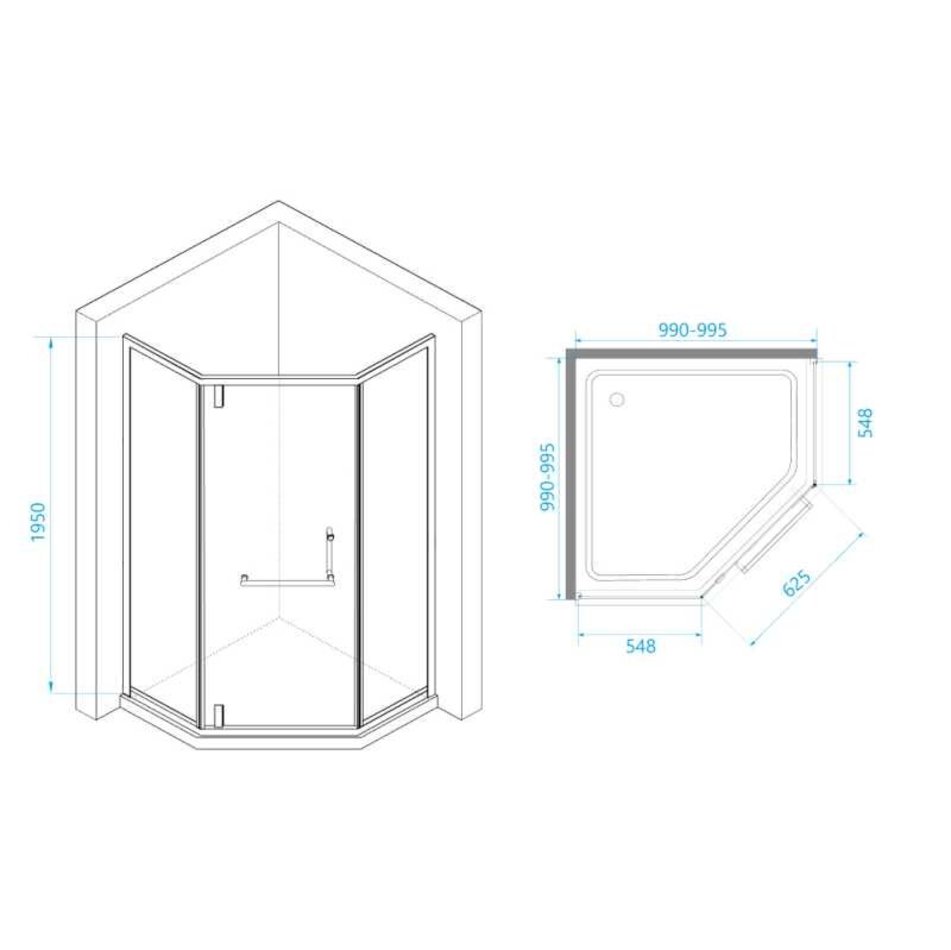 Душевой уголок трапеция с распашной дверью. Стальные профили создают цельную конструкцию душевого уголка. Трап или поддон приобретается отдельно.