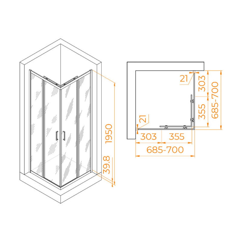 Душевой уголок RGW PA-030 Passage 3508103077-11, 70 х 70 см, стекло прозрачное, профиль хром