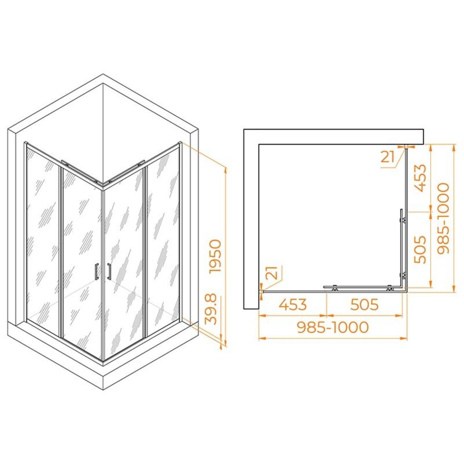- Размеры с диапазоном регулировок: (985-1000)х(985-1000)