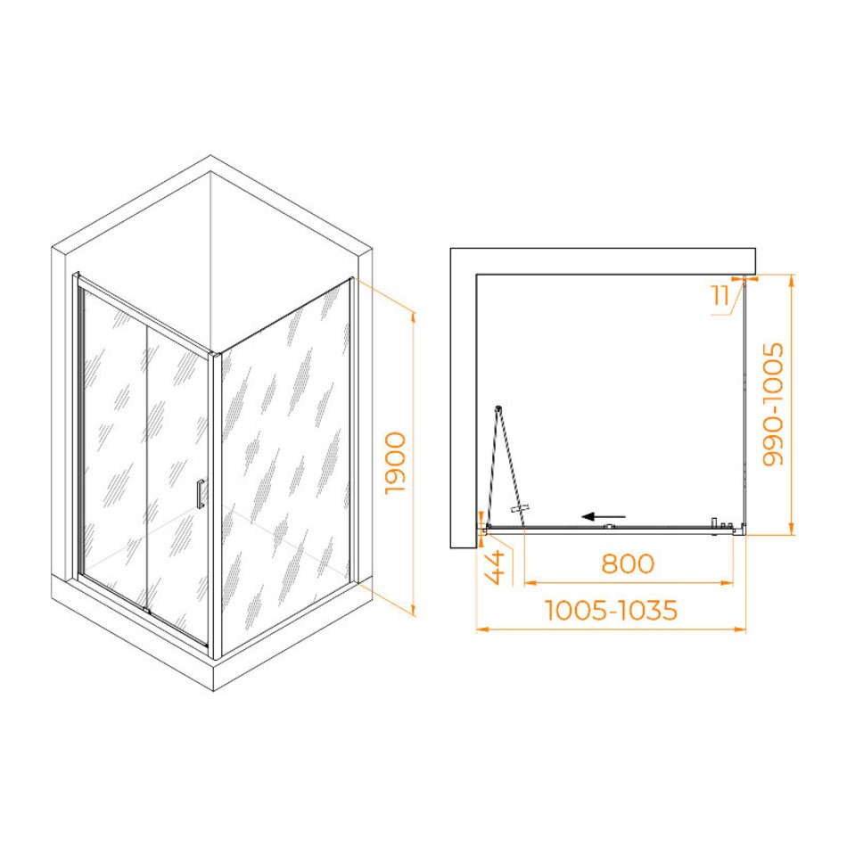 - Размеры с диапазоном регулировок: (1005-1035)x(990-1005)