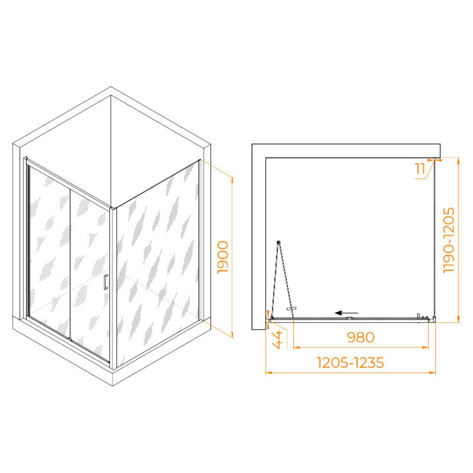 - Размеры с диапазоном регулировок: (1205-1235)x(1190-1205)