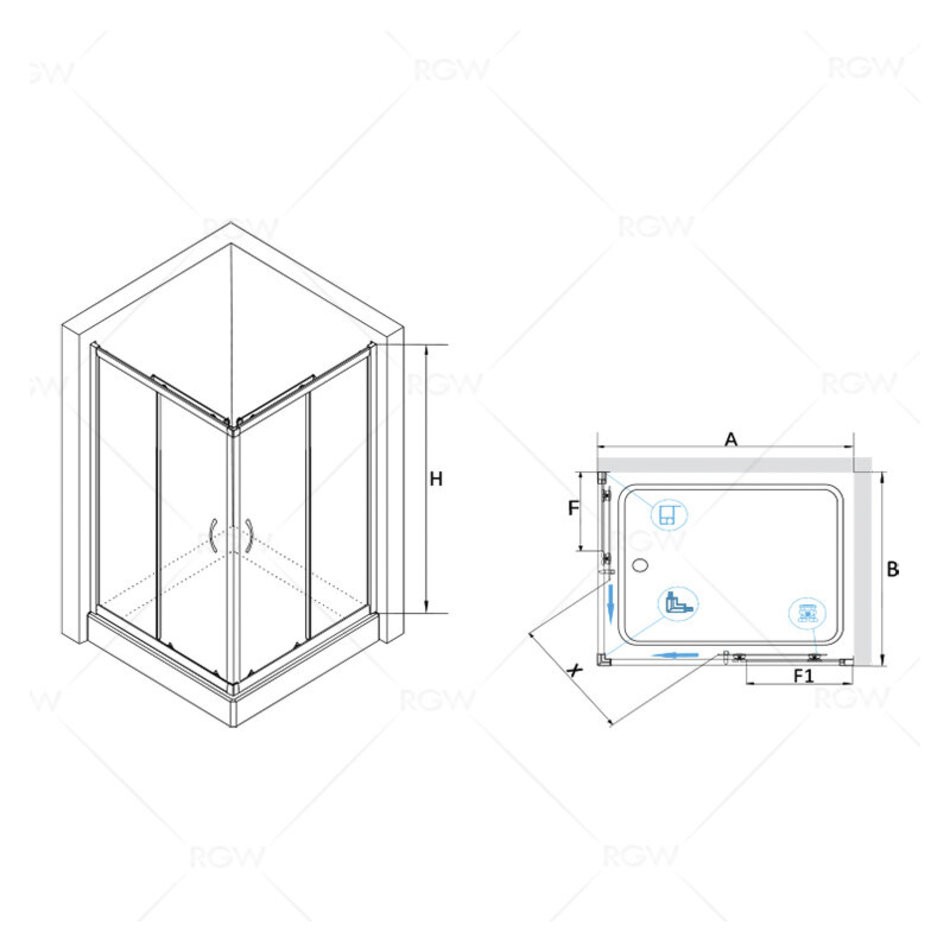- Дверь: раздвижная, 2 створки раздвигаются с угла