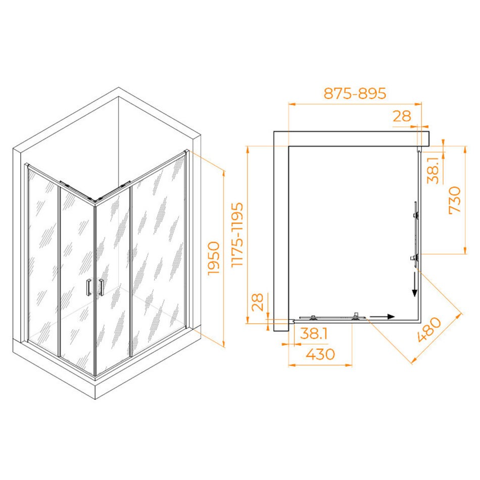 - Размеры с диапазоном регулировок: (875-895)х(1175-1195) мм