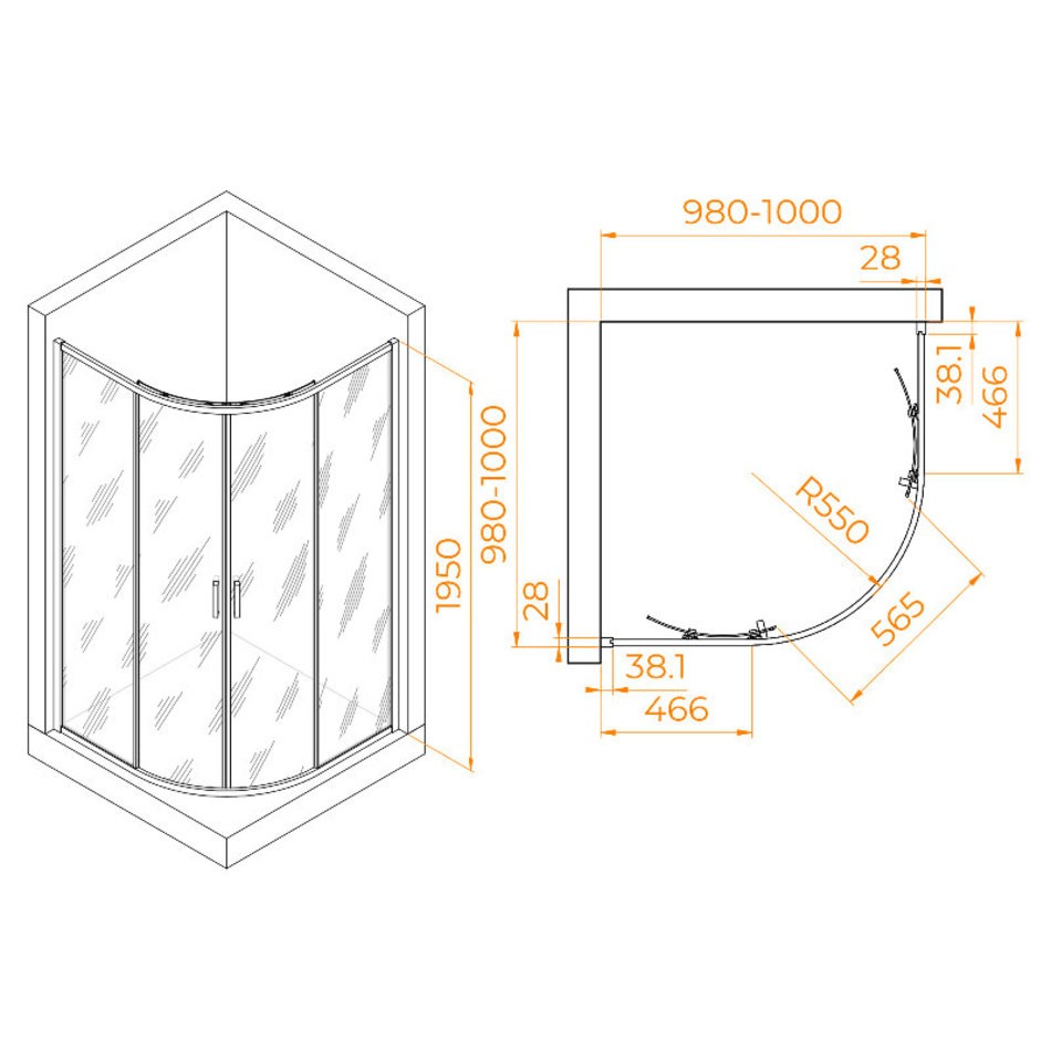 - Размеры с диапазоном регулировок: (980-1000)х(980-1000) мм