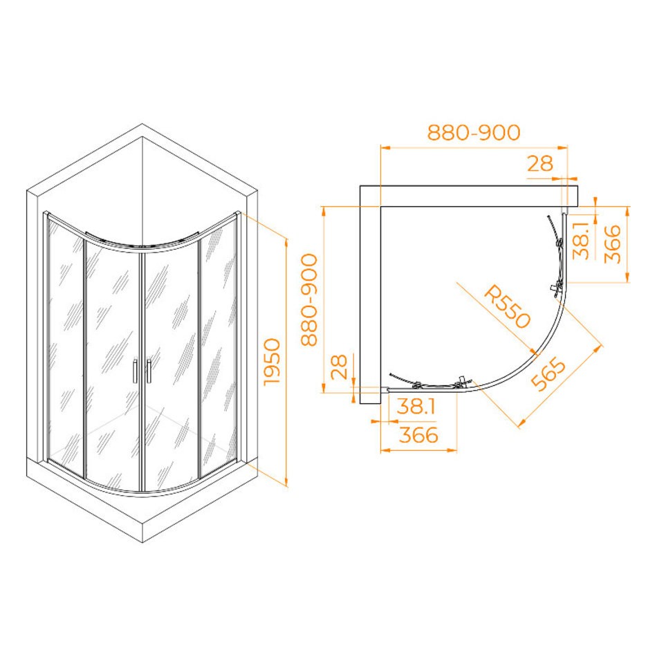 - Размеры с диапазоном регулировок: (880-900)х(880-900) мм
