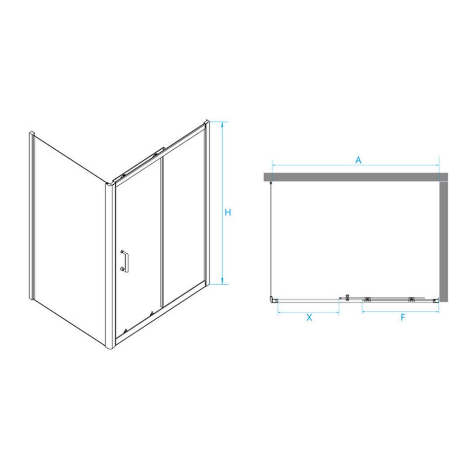 - Ширина неподвижной части (F): 60 см