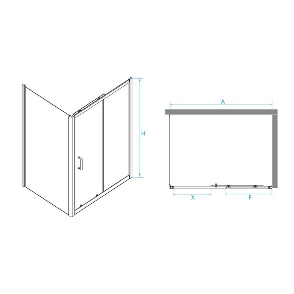 - Ширина неподвижной части (F): 50 см