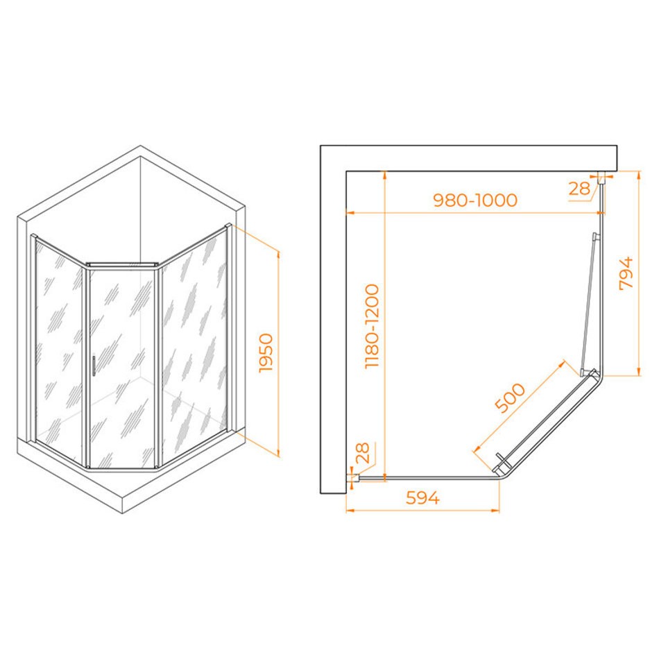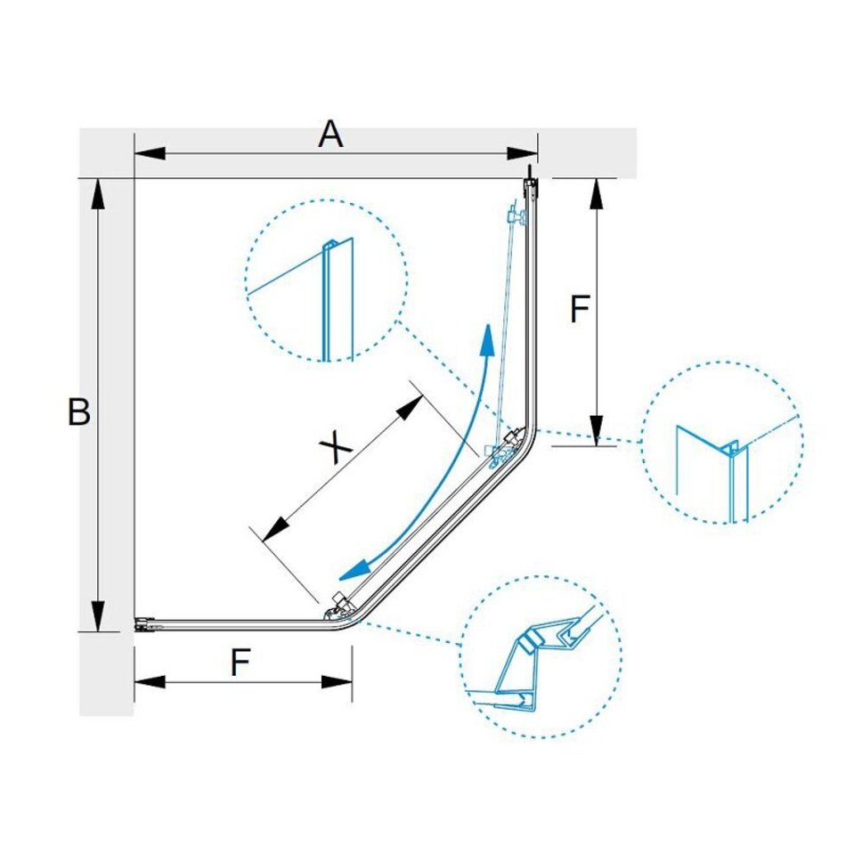- Универсальная установка позволяет установить изделие в правый или левый угол, при монтаже можно выбрать направление открывания двери.