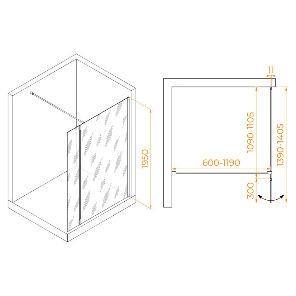- Размеры с диапазоном регулировок: (1090-1105+300)