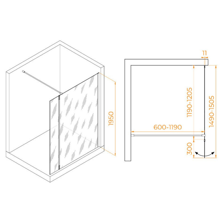 - Размеры с диапазоном регулировок: (1190-1205+300)