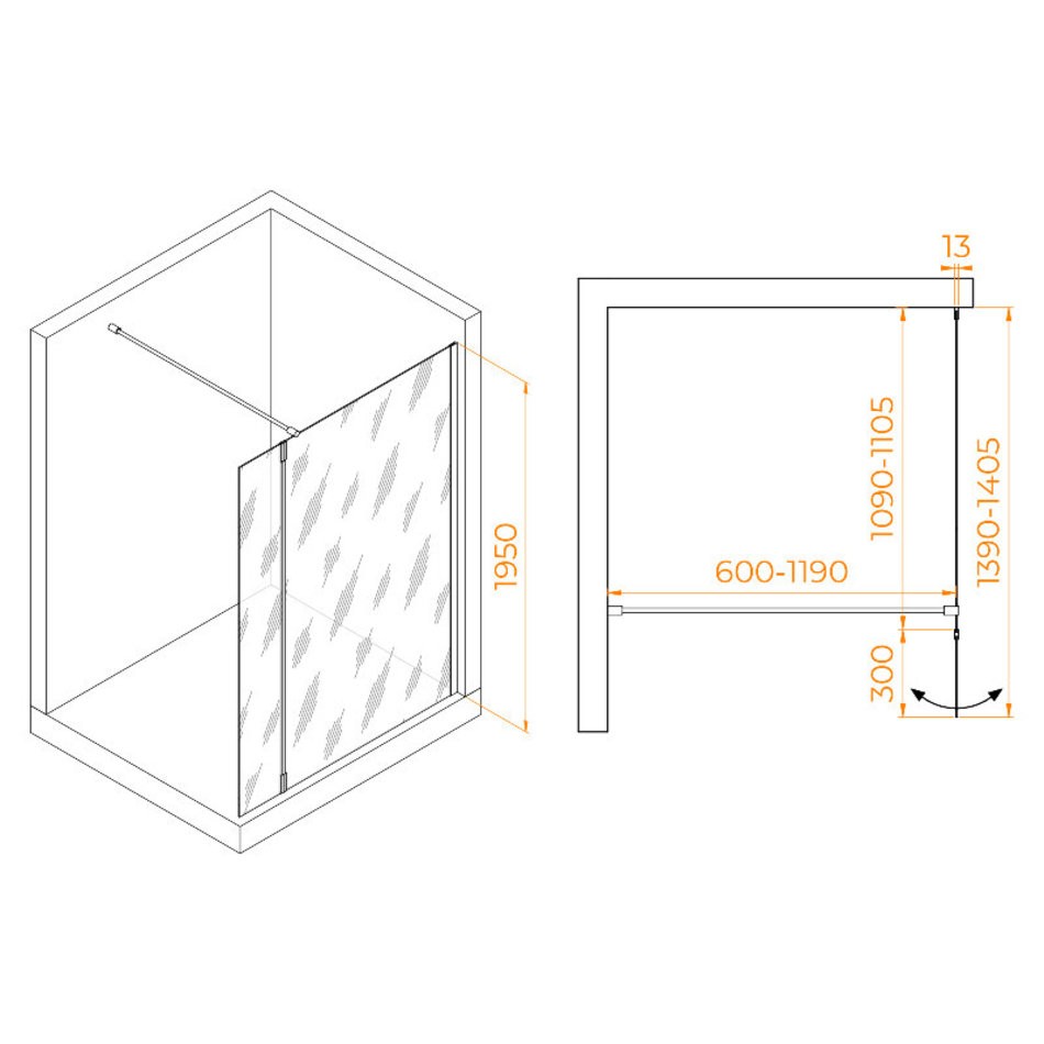 Душевой уголок RGW WA-051 (WA-010 + Z-071) Walk In 351005113-11, 120 x 110 см, распашная створка, стекло прозрачное, профиль хром