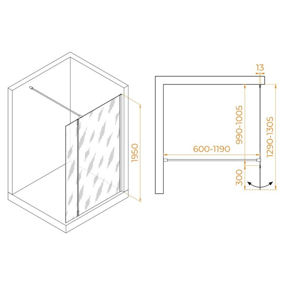 - Душевой уголок с маятниковой дверью 30 см