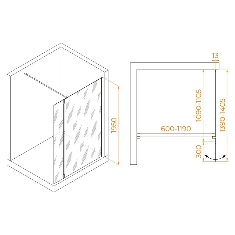 Душевой уголок RGW WA-051Gb, 351005113-16, 110 см + 30 см х 120 см, Walk In, стекло прозрачное, профиль золото brush