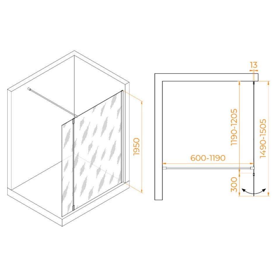 Душевой уголок RGW WA-051W (WA-01W0 + Z-071W) Walk In 351005123-15, 120 x 120 см, распашная створка, стекло прозрачное, профиль белый