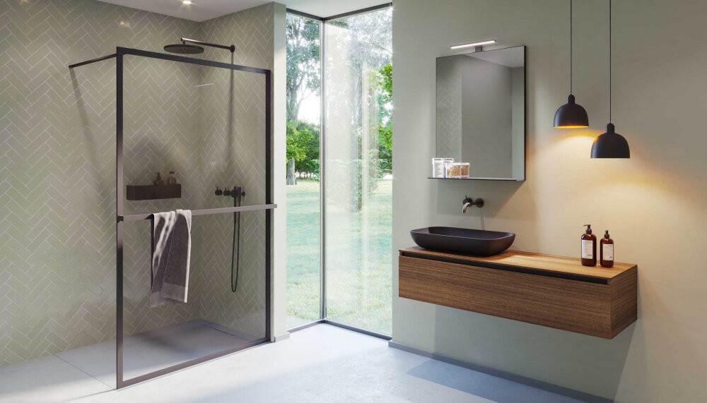 Душевой уголок Riho Lucid GD400 G005025121 90 x 200 см, стекло прозрачное, профиль черный матовый, с полотенцедержателем