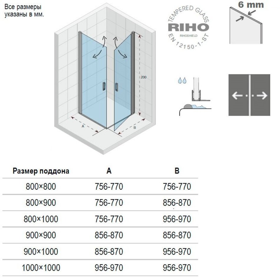 Душевой уголок Riho Novik Z209, G003026120, 100 х 100 см, стекло прозрачное, профиль хром
