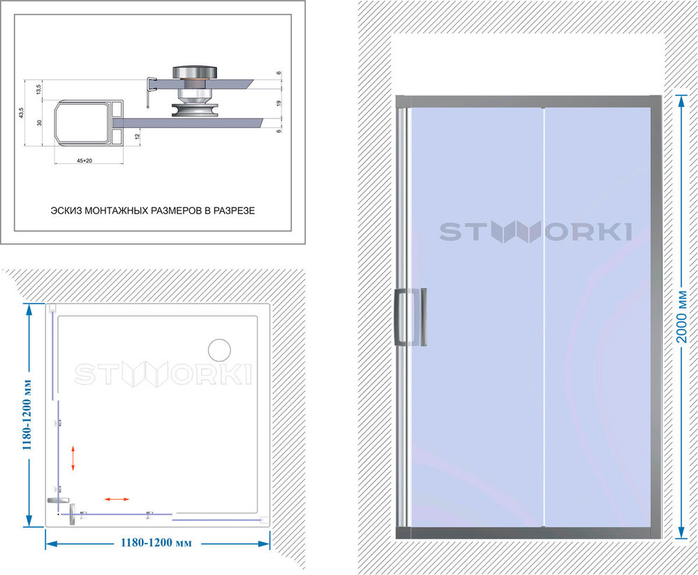 - Напольный монтаж / монтаж на поддон / монтаж пристенный в угол