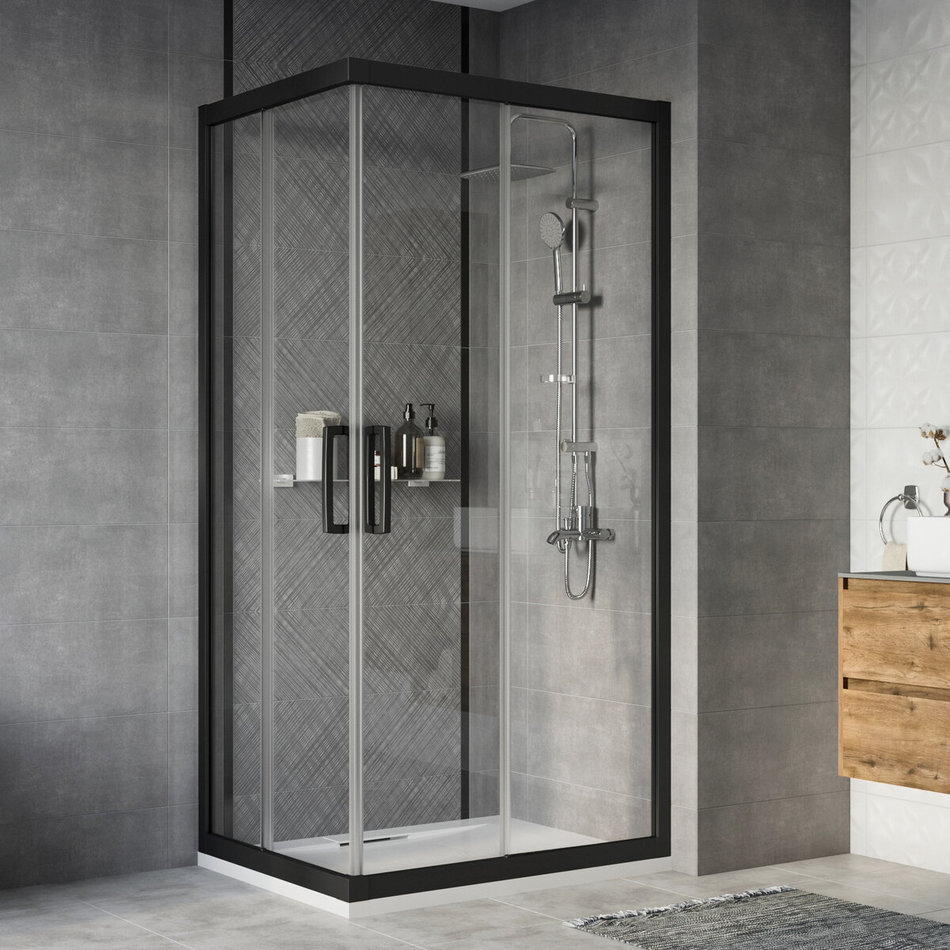 Душевой уголок Stworki Карлстад DE019RC80100200BLK 100 x 80 см, профиль черный матовый, стекло прозрачное, 3GW066TTKK000