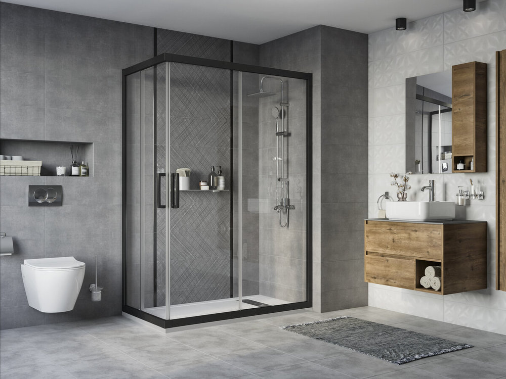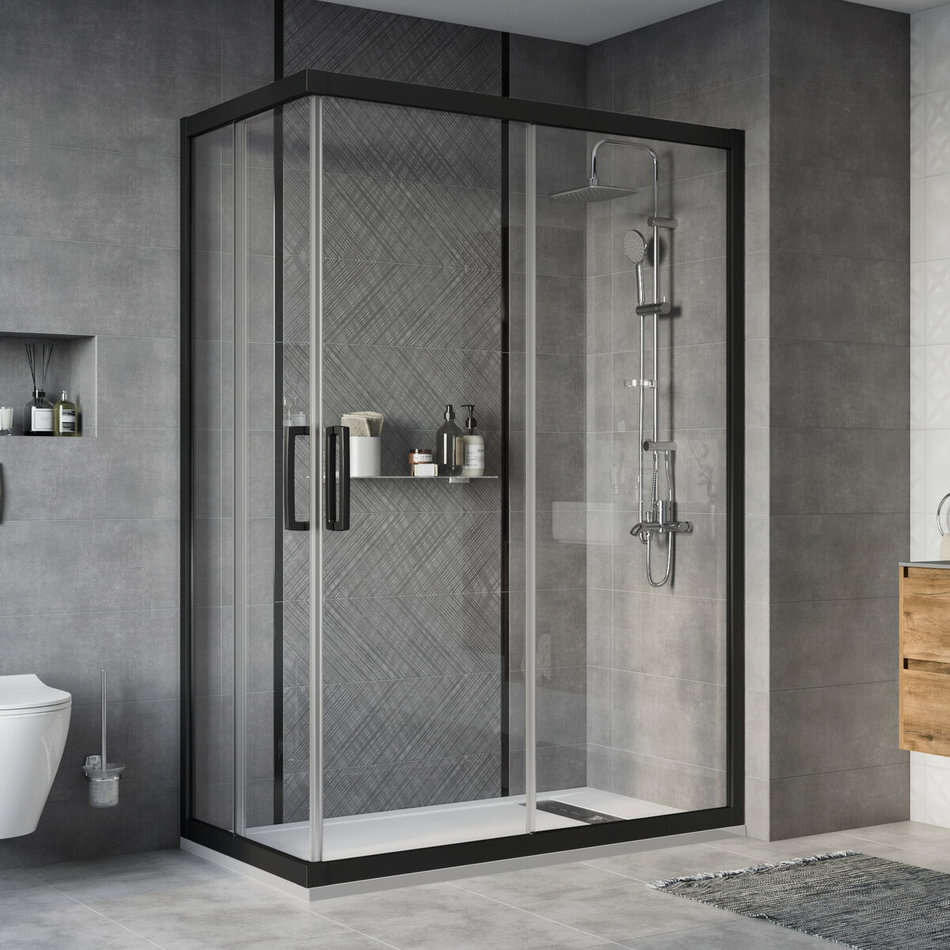 Душевой уголок Stworki Карлстад DE019RC80140200 140 x 80 см, профиль черный матовый, стекло прозрачное, 3GW120TTKK000