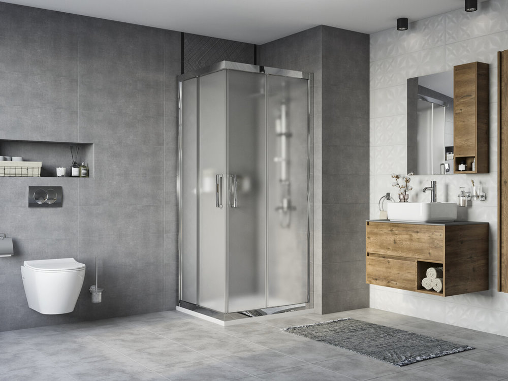 Душевой уголок Stworki Карлстад DE019RC8090200 90 x 80 см, профиль хром глянцевый, стекло матовое, 3GW136TTKK000
