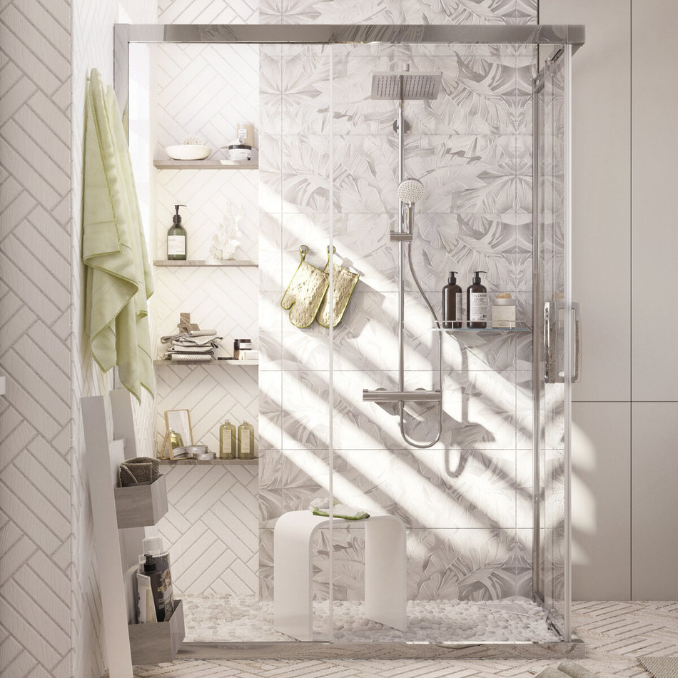 Душевой уголок Stworki Карлстад DE019RC90110200CH 110 x 90 см, профиль хром глянцевый, стекло прозрачное, 3GW044TTKK000