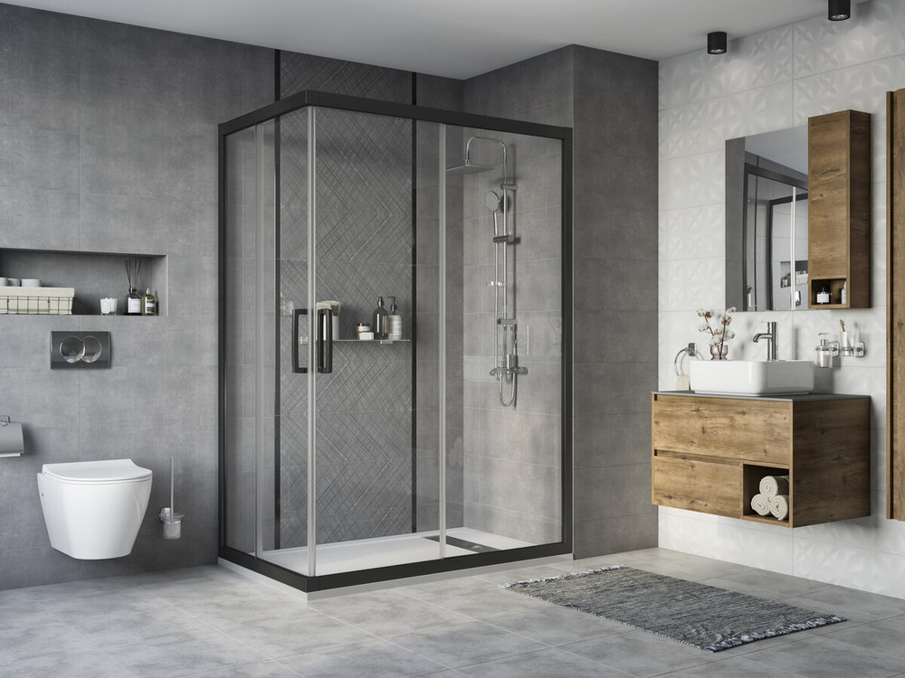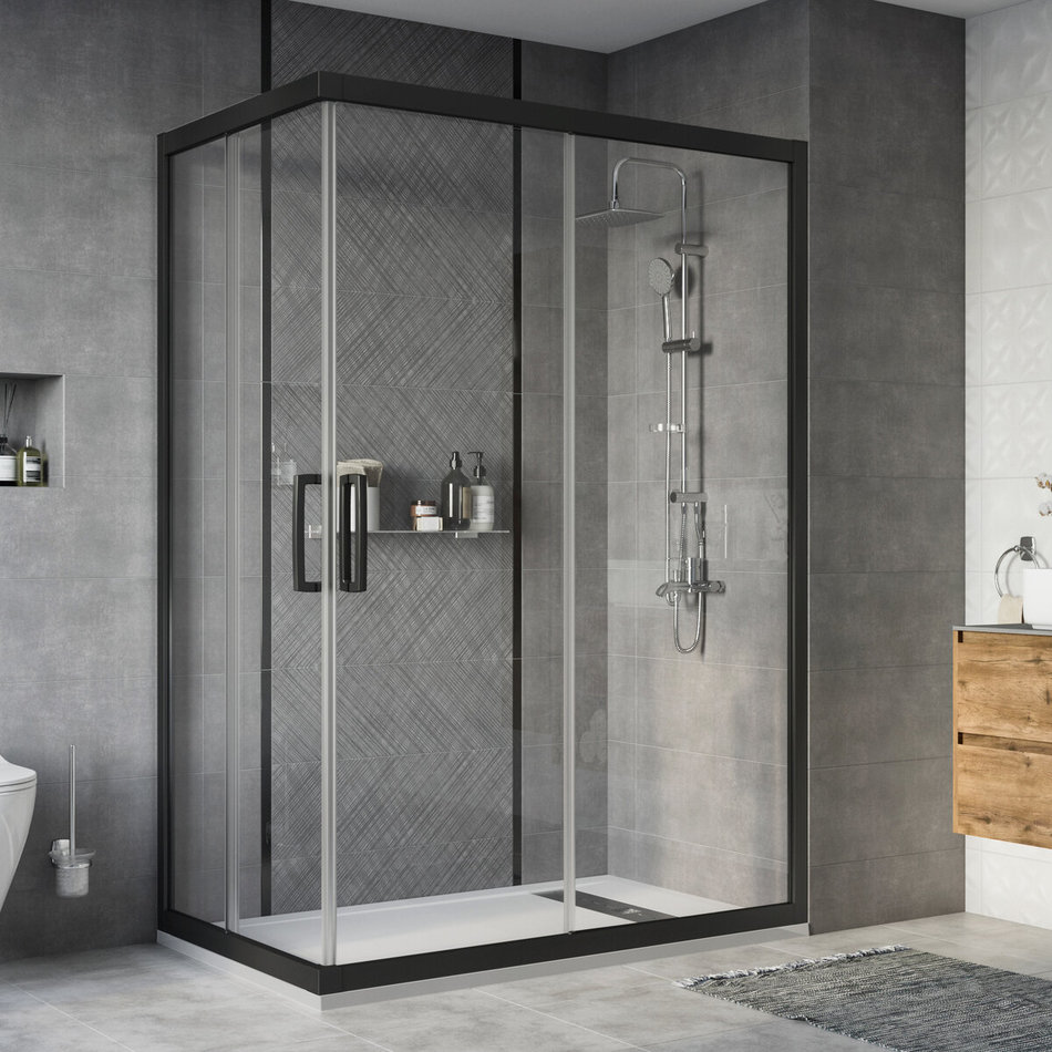 Душевой уголок Stworki Карлстад DE019RC90140200 140 x 90 см, профиль черный матовый, стекло прозрачное, 3GW121TTKK000